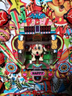 「レッドライオン」を打ってお次は、「うちのポチ」(1990年発売三共)。女性ぱちんこファンを増やすために、こんな可愛い台を開発したのだろうか?と思ったほど。私は今年パチンコ歴34年になりますが、その中でもベスト3に入る可愛さ。勿論「うちのポチ」は数百台あるコレクションの中の1台でもある。