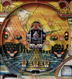 振り向くと1列設置されていたのは1984年登場の西陣の「D-51」。パッと見たD-51の役物の薄い羽根の形、セル中央下にデザインされている線路。子供ながらに凄く衝撃的な数秒間だった。