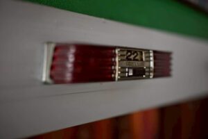 店内はチンジャラと賑やかで楽しそうな雰囲気の中、まるで遊園地に行くような気持ちでお店の入口へ。まだ体も小さかった私の前には観音開きの二枚のガラスのドアはとても大きく見えた。両手で力いっぱいドアを押しながら開けて進むと、店内の木の床の油の匂いが鼻に入ってくる。それは線路の匂いととても似ていた。