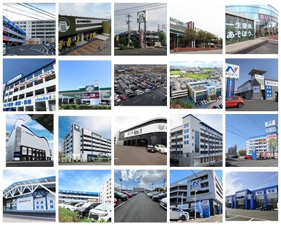 さらに調べて行くと上記の写真の通り、ホールの居抜き物件は20店舗以上に及んでいる。クルマ販売店にとってはホールの居抜きは広い駐車場を持つだけでなく、雨に濡れない立駐にも車を展示できるメリットがある。
