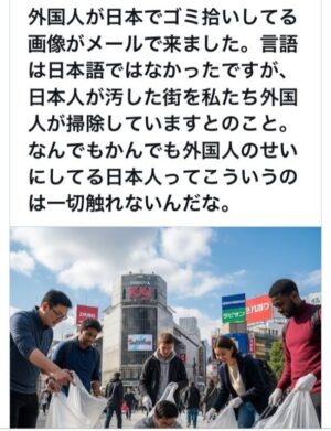 「日本人が汚した街を、私たち外国人が掃除している。日本人は何でも外国人のせいにするのに、こうした現実には目を向けない」。